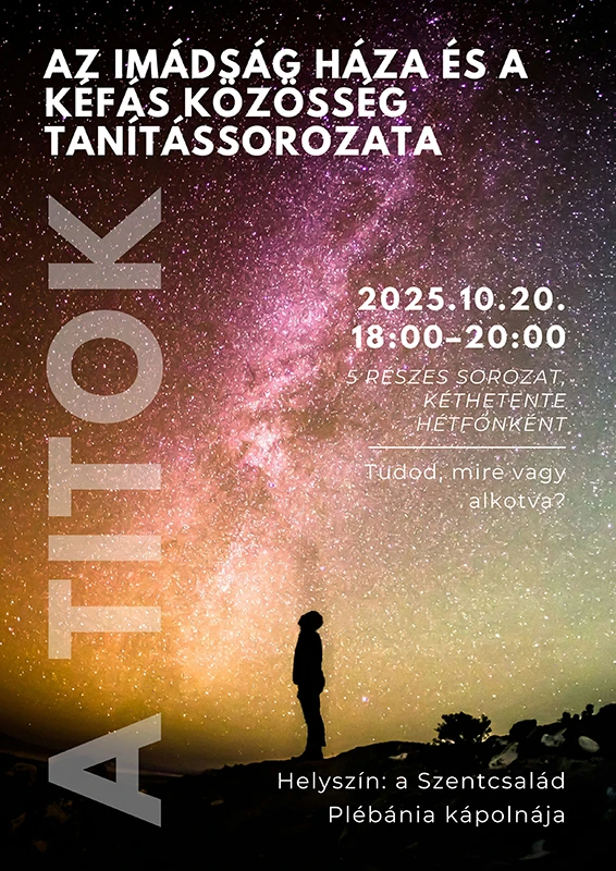 9. A Kéfás Közösség ismét öt alkalomból álló tanítássorozatot indít október 20-tól kéthetente hétfőn 18:00 órától a Kápolnában, melyre szeretettel várnak Mindenkit. Az információs plakátot megtaláljuk a hirdetőtáblán.