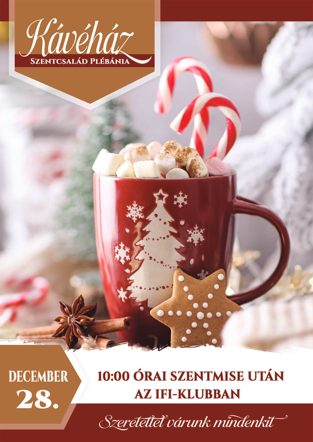 Szent Család Vasárnapján Kávéház követi a 10:00 órai búcsúünnepi Szentmisét, melyre szeretettel várunk Mindenkit.